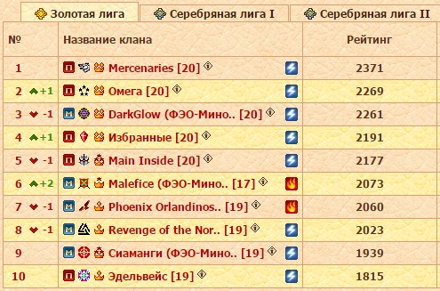 Сиаманги заключительную часть сезона провели не лучшим образом - три поражения в четырех турах. Но и соперники были серьезные: Malefice, Избранные, Phoenix Orlandinos. А победу клан одержал над Эдельвейс. Поэтому девятое место Сиамангов, на одну строчку выше Цветочных, вполне закономерно. При этом основную задачу клан явно выполнил чуть ранее, сохранив место в высшем эшелоне. А занять, скажем, седьмое, девятое или десятое место в золоте - не так уж и принципиально.