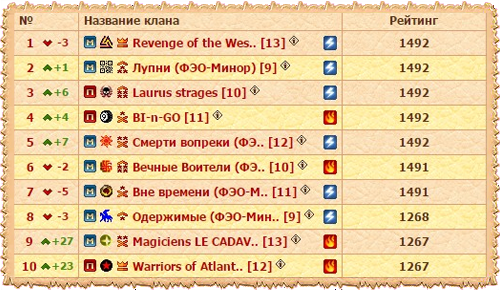 Приятно видеть, что Паршивцы решили принять участие в шестом сезоне, в отличие от предыдущего. Надеемся, суровая жеребьевка в первом же туре не отбила у них желание ярко выступить этой осенью. Стяги Паршивцы взяли, что говорит о потенциальном желании хорошо подраться. Но не с Шарами, которых в три раза больше. В итоге сражений не получилось, никто особо не кастовался. Бинго, в первом туре приведя на острова 32 бойца, обозначили свои притязания в этом сезоне - позиция примерно с четвертой по шестую, если исходить строго из параметра "явка". Впрочем, прошлый сезон показал, что не явкой единой завоевываются призовые места.