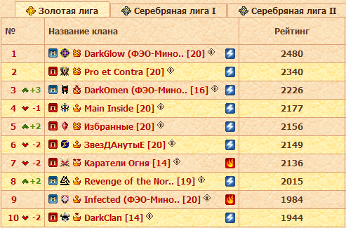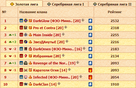 Но в любом случае все кланы, взобравшиеся на пьедесталы в своих лигах - большие молодцы. Будничные или даже технические победы - все равно остаются победами. А выйти в лидеры в этом сезоне было непросто любому из кланов. Начиная от предсезонной подготовки и заканчивая полной концентрацией непосредственно в день сражений.