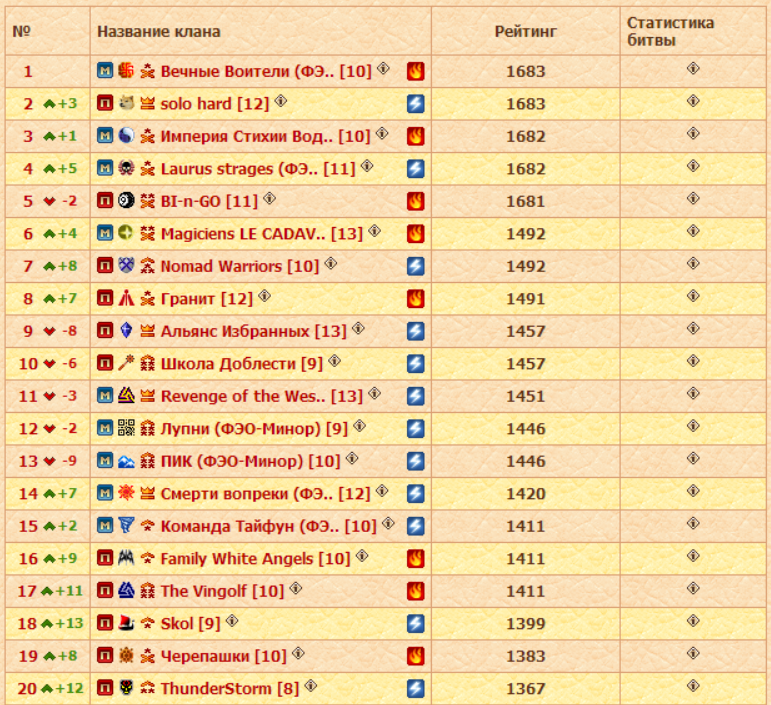 В четверг, как и в понедельник, Радужные острова стали свидетелями сражений между 48-ю кланами. Список участников сезона не расширился, на арене были все те же. А лидерство в рейтинге третий тур кряду удерживают Вечные Воители. С них и начнем.