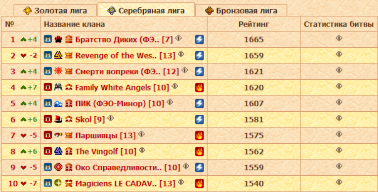 Победа в сражении и переходы кланов между лигами подняли Братство Диких на первую строчку Серебряной лиги!