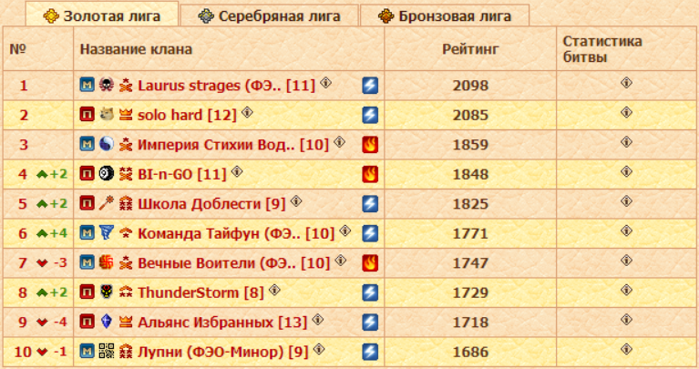 Империя Стихии Воды седьмой тур пропустила, получив за это штраф в размере 79-ти рейтинговых баллов. Что не помешало клану остаться на третьей строчке Золотой лиги.