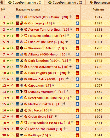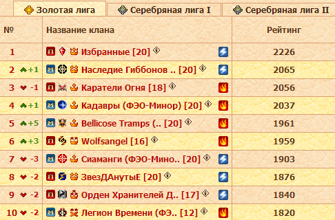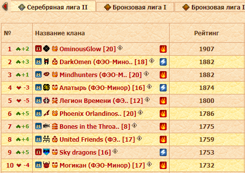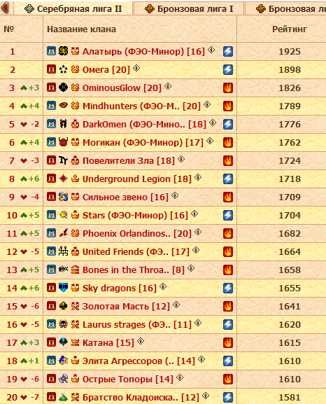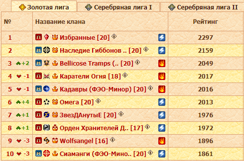 В качестве постскриптума отметим, что все позиции кланов в серебряных и бронзовых лигах указаны уже после переходов между оными. Лифт "серебро-бронза", как правило, работает на протяжении сезона активно и исправно. А вот между золотом и серебром рокировок пока не было.