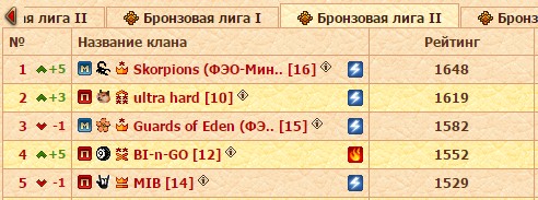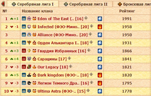 В Бронзовой лиге II Fiends заслужил повышение победой 5:0 над Альянс Избранных и обосновался на 15-м месте второго серебра. А Снежинки, одолев 5:0 Guards of Eden, перекочевали в Серебряную лигу под номером один на 17-ю строчку.