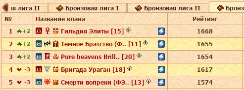 И лишь Бронзовая лига III в этот игровой день никого из своих представителей в серебро не делегировала. Лидировавшие здесь Бригада Ураган и Смерти вопреки шанс упустили. Причем Ураганы, возможно, сознательно – у них пропуск. А первенство захватила Гильдия Элиты, 4:1 обыгравшая Смерти вопреки.