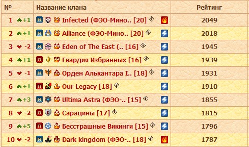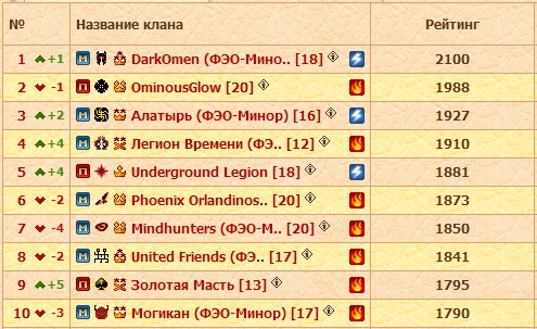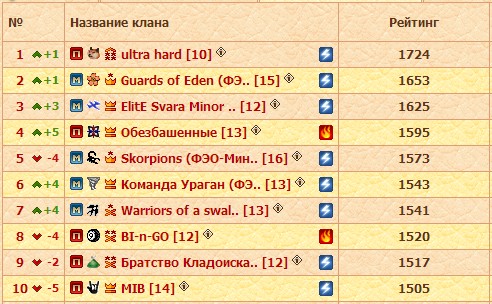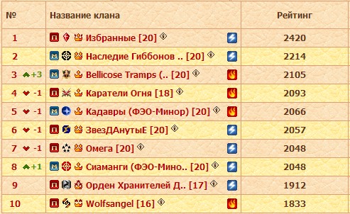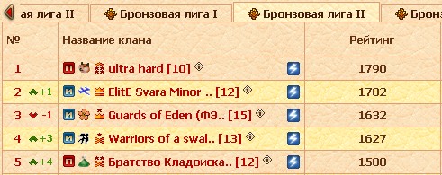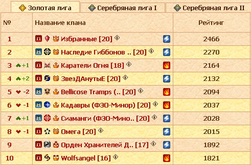 Как видим, стыков между золотом и серебром в этот день не было, а основной претендент на переход в лигу ниже - Wolfsangel - на 15 очков превышал критический порог, необходимый для трансфера клана.