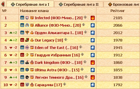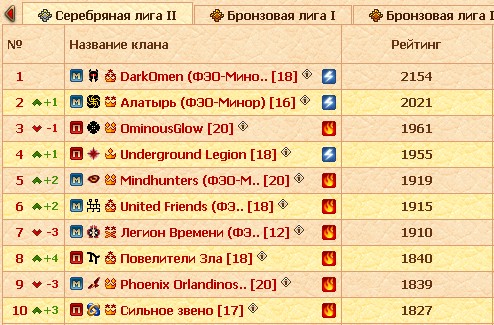 Во второй Серебряной лиге лидером, естественно, остались DarkOmen, а на вторую позицию вышел Алатырь.