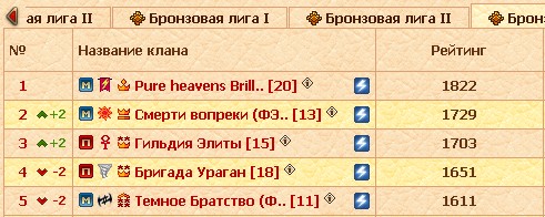 Наконец, Бронзовая лига III. Её экс-лидер, Гильдия Элиты, в понедельник сражалась против клана из серебра, Laurus strages, и минимально уступила, потеряв шансы завершить сезон не в Б3. Поражение отбросило Гильдию на пятое место.
