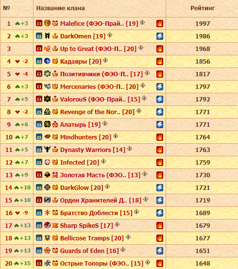 Оба клана остались в топ-10 сильнейших коллективов рейтинга, Малефайс на четвертой строчке, а Избранные – на 10-й.
