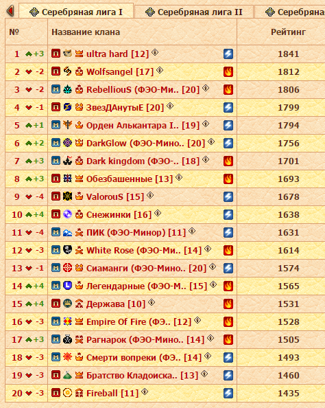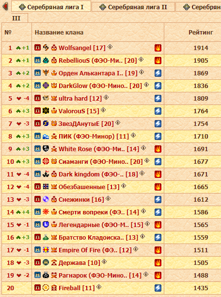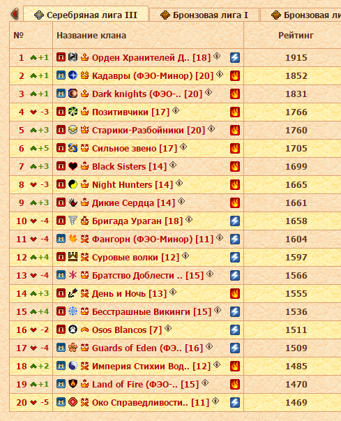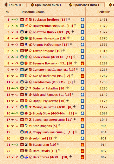 Позитивчики опустились на четвертое место в третьем серебре, а Орден, как уже сказано выше, занял лидирующую позицию и посматривает на аутсайдеров в золоте.