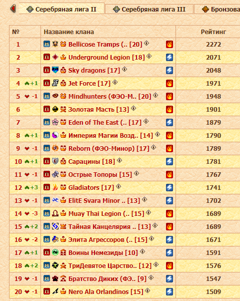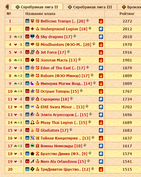 Победу в третьей серебряной лиге празднует клан Кадавры. Финальный бой они решили не давать, судьба первой строчки рейтинга здесь решилась туром ранее. А вот их главные преследователи – Орден Хранителей Дракона – побились знатно, им противостоял магмарский коллектив Сильное звено. В целом, победа Ордену досталась легко, уже через полчаса битвы люди вели 3:0. Но на двух оставшихся островах резервисты-магмары и двадцатки из ударок проявили себя во всей красе. Итоговый счет встречи –3:2 за Орденом Хранителей Дракона, клан на второй позиции второго серебра. Но при этом – девятый по суммарному урону за сезон. А oleg55011 стал четвертым в личном зачете по накопленному в рамках турнира урону. Серьезные достижения.