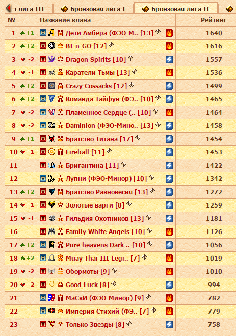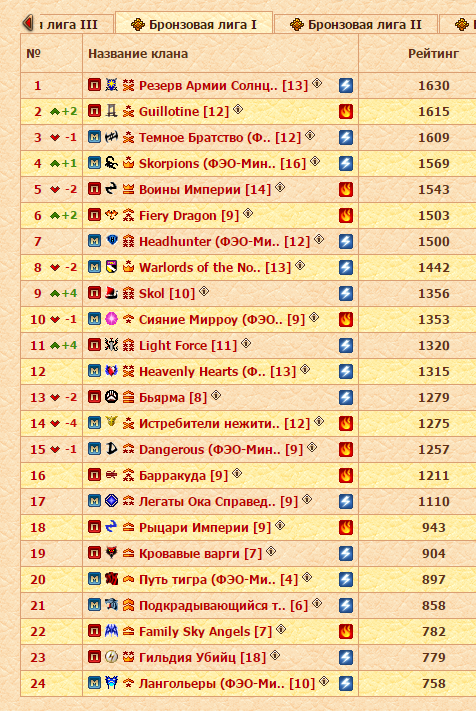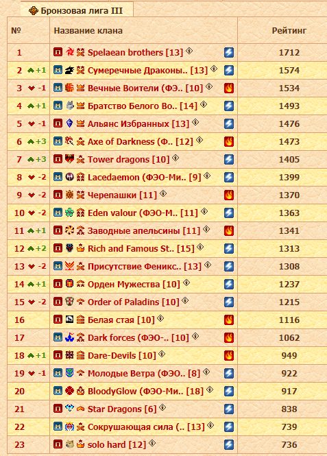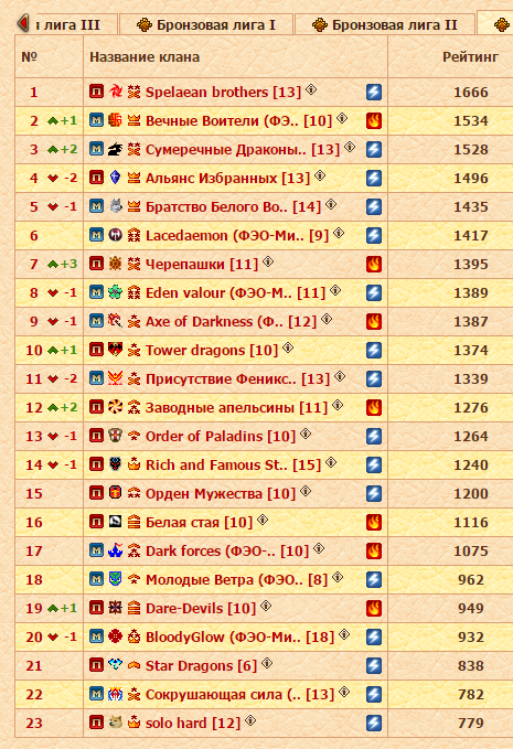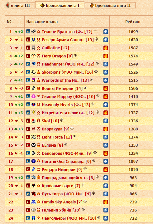 В первой бронзе чемпионским стало сражение Темное Братство против Guillotine. Быстрая и уверенная победа, очередной пропуск тура кланом Резерв Армии Солнцеворота – победитель подлиги выявлен.