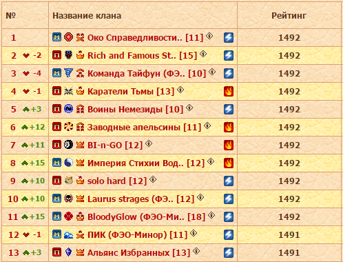 В целом по итогам двух туров в соревновании насчитывается уже 55 соискателей. Маловато, конечно, но причины мы обозначили в заглавном абзаце. После мирокрушения ступать на выжженную землю – довольно боязно. А в лидеры формально вышли сразу 13 кланов, 11 из которых не теряли даже бонусных очков. Поэтому: турнирная таблица топ-13, а не привычные 10.