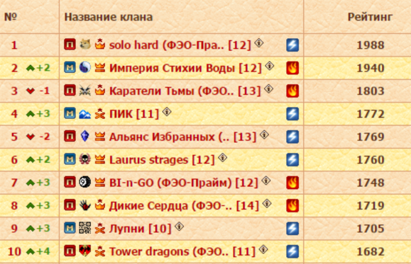 На восьмую позицию поднялись Ладохи, доведя представительство магмар Прайма в топ-10 до трех кланов. Забегая наперед – столько же после пятого тура было у людей Прайма и людей Минора. А магмар Минора в десятке сильнейших представляла лишь Империя Стихии Воды.
