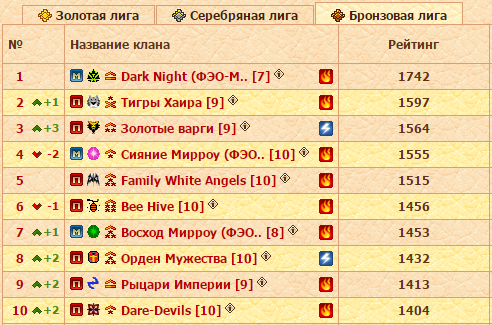 Клан Око Справедливости после сражений понедельника снова стал первым после «большой шестерки», то есть оккупировал седьмую строчку.