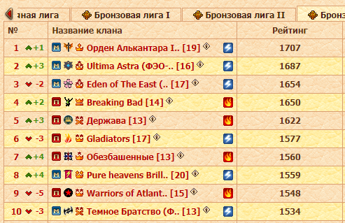 Орден Алькантара I прыгнули на вторую строчку таблицы после разгрома Держава. Вот кому-кому, а им за державу точно не обидно!