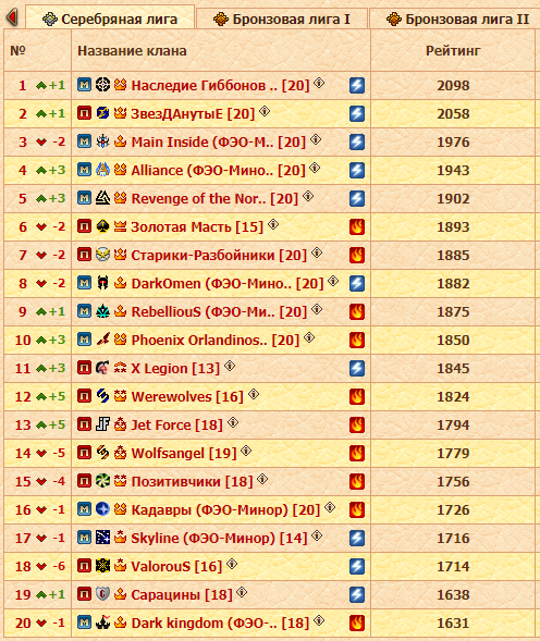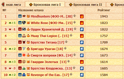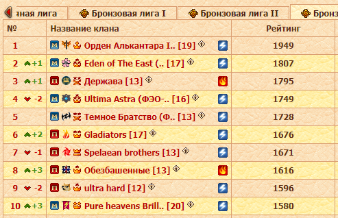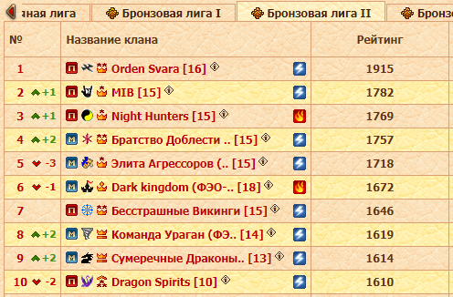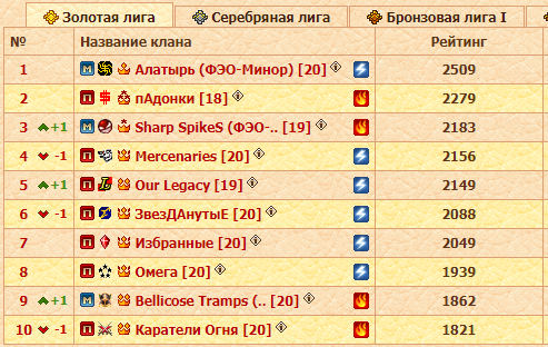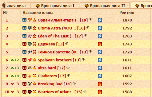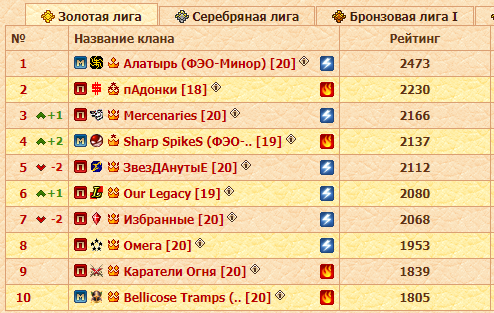 Вот так и вышло, что первая пятерка осталась без каких-либо изменений. Единственный клан в подлиге, который прыгнул вверх аж на 4 позиции, – это Gladiators. У них был неплохой бой с Цвет Ночи. Битва, конечно, не без "почерка бронзы", но именно за подобные казусы мы и любим эту лигу!