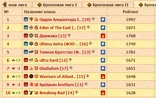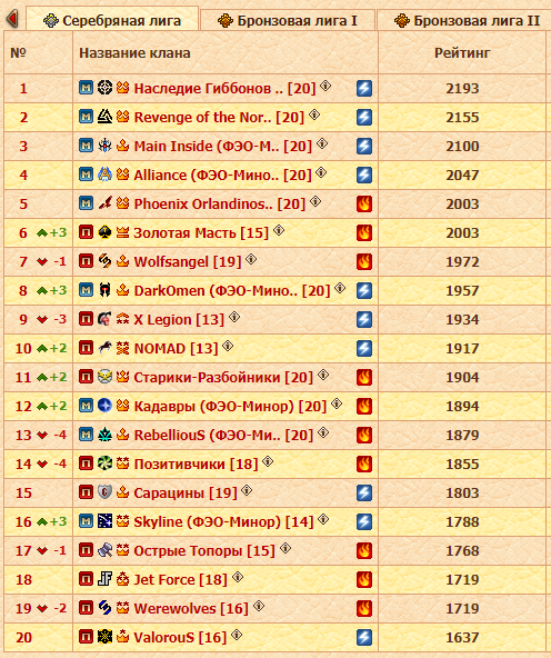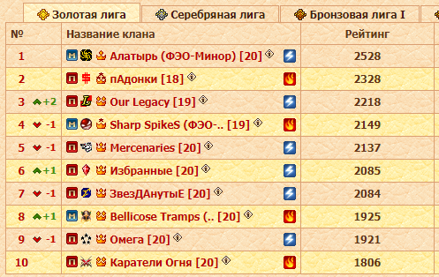 В остальной части таблицы происходили всё же определённые движения, и некоторым кланам удавалось укрепить свои позиции. А некоторым нет...