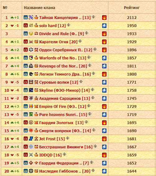 Третье место занимают Бесстрашные Викинги после победы над IDDQD. Люди быстро открыли счет, забрав без сопротивления синий и красные острова. На сером острове хорошо махал Махал, и счет стал 3:0 в пользу людей. На зеленом участке Викинги нагнали _STRAX_ на соперников и забрали этот остров. Магмары смогли победить только на золотом участке. На нем выделим воеводу Alexx_RF, который смог внести неоценимый вклад в это сражение, будучи физовиком. Сражение закончилось со счетом 4:1 в пользу Бесстрашных. Они поднялись на третье место, а IDDQD опустились на 14-е.