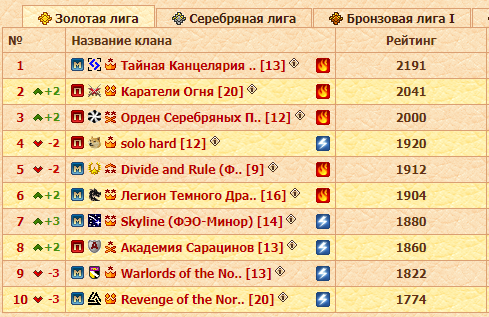 А вот и первые подвижки в изначальном составе лиг. Кто бы мог подумать, что Академия Сарацинов возьмет и после первого же внутрилигового тура впрыгнет в золото? Но именно так и случилось.