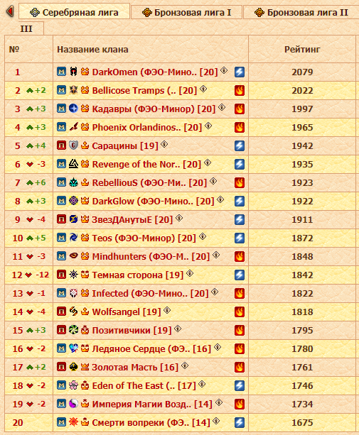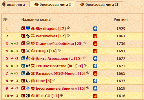 DarkGlow не оставили шансов Ледяное Сердце. Уверенная победа принесла ДГ три позиции и промежуточную восьмую строчку. Магмарский клан уступил две позиции и лишь 16-ый.