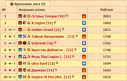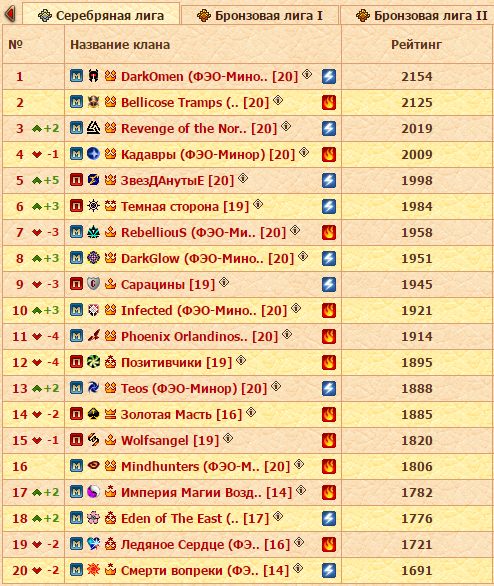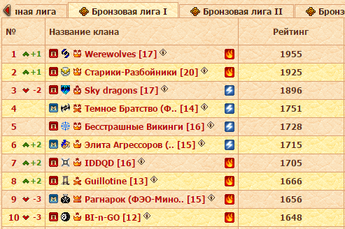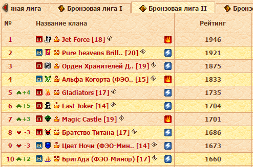 Героями стали DarkOmen в серебре и теперь уже тройка кланов праймовских магмар – Werewolves, Jet Force и Острые Топоры – в Бронзовых лигах.
