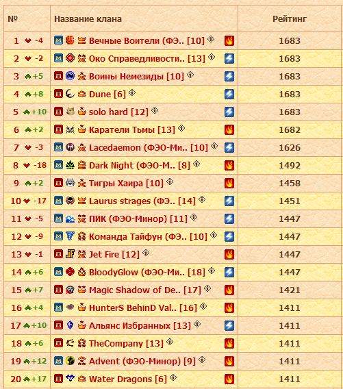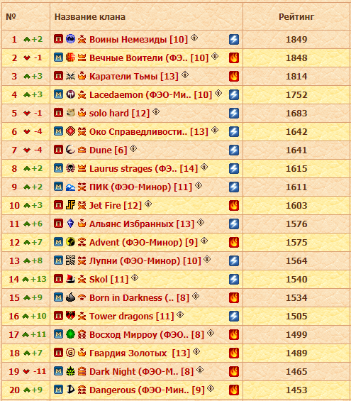 Система матчинга не перестает удивлять! Несмотря на то, что в списке кланов, победивших в первых двух боях сезона, находилось немало сильных соперников, на этот раз рандом сводил вместе и более или менее равных соперников. В одном углу ринга находятся Тигры Хаира – обладатели второй позиции в Бронзовой лиге прошлого года, немного усилившиеся в межсезонье и готовые покорять новые вершины. Напротив расположились solo hard – бойцы Золотой лиги, которые остались в шаге от пьедестала, потерявшие в этом сезоне часть команды в пользу Воины Немезиды, а также апнувшихся на магические уровни.