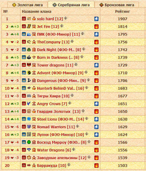 Довольно большой прорыв совершили   Noobees, поднявшиеся аж на четыре позиции вверх после победы над   Dare-Devils. Составы обоих кланов не так многочисленны, как в лигах выше, но и в таких противостояниях может быть место итриге. Хотя Демоны не могут похвастаться большим количеством бойцов максимального уровня,  Lawlessness не думает, что для взятия острова ему нужны союзники или даже ездовые животные.