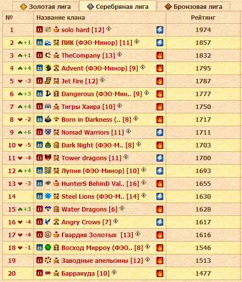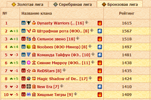 Оба клана сохранили свои места в турнирной таблице: Воины наращивают преимущество, Laurus strages остаются на третьей строке.