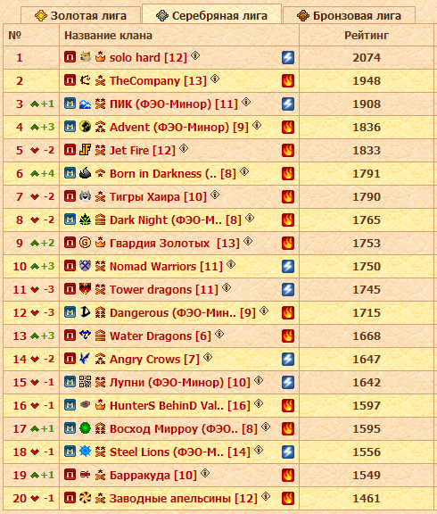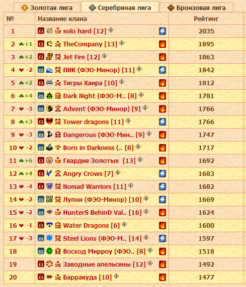 В нижней половине серебра между собой выясняют отношения давние соперники за крепость Кириит. На стороне Ворон – сыгранный состав пятых уровней, усиленных двумя орлами постарше, а на стороне Водных Драконов можно заметить бойцов на любой вкус и уровень – от третьего до десятого.