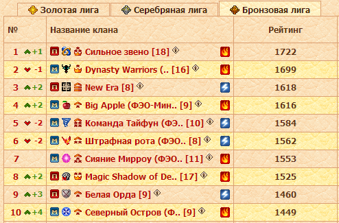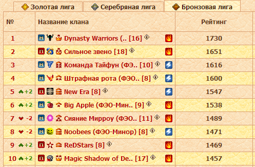 В Бронзовой лиге все спокойно: пьедестал почета сохранился в первозданном (с прошлого четверга) виде – Dynasty Warriors и Сильное звено одержали победу в своих стыковых поединках.