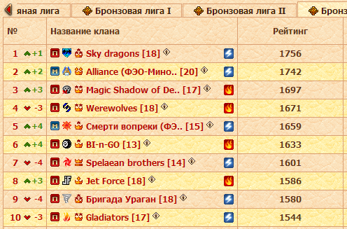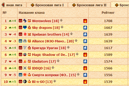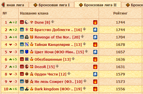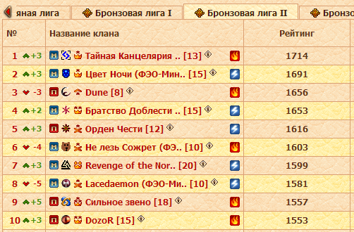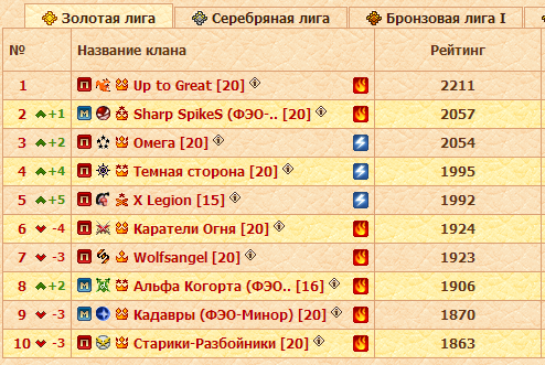 Орден Хранителей Дракона решил пропустить тур и потерял четыре строчки – 15-ое место.