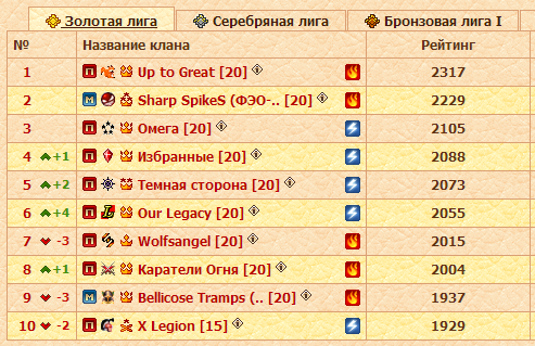 А вот где интриге места не было, так это в боях Up to Great против Sharp SpikeS и Омега против Избранные. Кланы аккумулируют свои силы для кого-то особенного, и на заведомо сильного соперника решили не тратиться. Не особенно что и изменилось для топ-3 золота, Белки все также первые, Шипы – вторые, Омега – третьи. А вот Избры упали из-за поражения на шестое место.