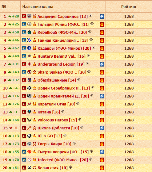 Каратели Тьмы. Целых 39 магмаров привели на острова серебряные призеры прошлого сезона, но далеко не все из них боевые маги. Состав также претерпел немало изменений (и продолжает меняться уже по ходу сезона), а таланты клан развил на 12 пунктов. Здесь только один вопрос – сменят ли на название на Золотые Паладины? Иначе ребята обречены на второе место.
