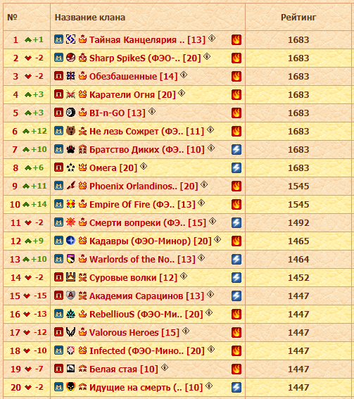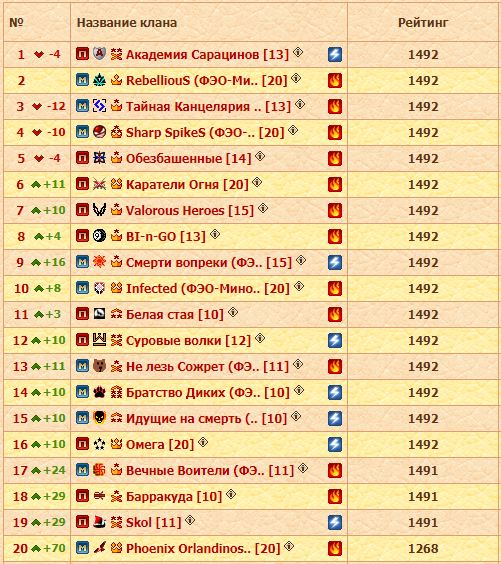 Каратели Тьмы. Итоговый счет сражения вряд ли кого удивил, тем более Каратели – серебряные призеры Лиги Героев. Здесь хотим отметить именно миноровский клан. Невзирая на свой уровень, представители Восхода совсем не из робкого десятка, и они оказали достойное сопротивление своим противникам почти на всех точках. Неплохо стоял синий остров, и неизвестно, сколько бы продолжался бой за золотой участок, если бы не выход резерва 11-го уровня, да и на зеленых песках бились почти час. Желаем обоим кланам в будущем интересных сражений, в которых они смогут раскрыться со своих лучших сторон.