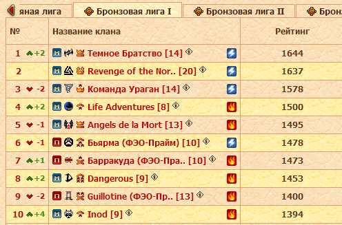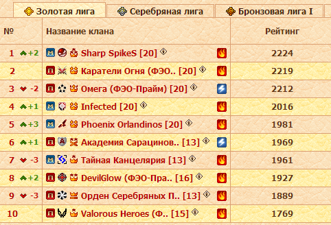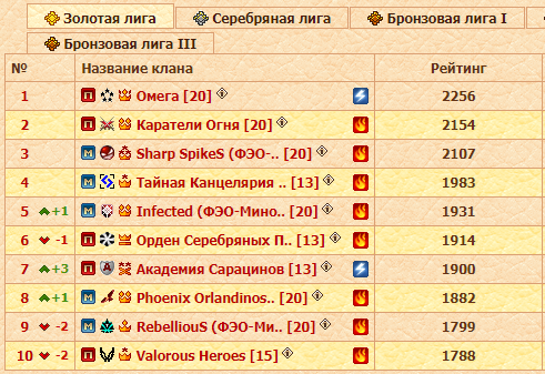 « Не лезь Сожрет» – хотел было сказать Я за коней Психиатер'у, но вовремя одумался и пожалел Академия Сарацинов. Впрочем, последним всё равно пришлось тушить очаги сопротивления – Севатар и negodd чуть было не сожрали-таки нескольких из Академии. Сарацины ворвались в Золотую лигу на седьмую строчку, их оппоненты отправились лакомиться кланами из середины Серебряной лиги – девятая позиция.