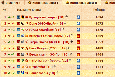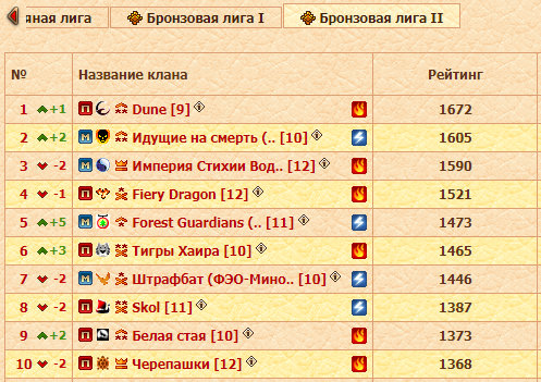 Warlords of the North не оставили шансов Империя Стихии Воды и поднялись на семь позиций, обосновавшись на 12-ом месте. Имперцы потеряли лидерство в Б2 и стали третьими.