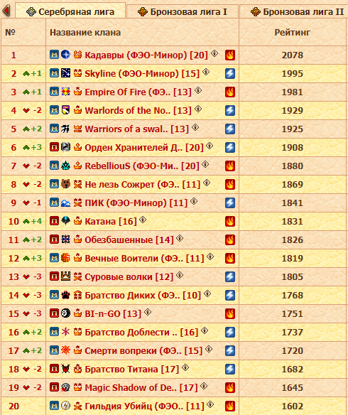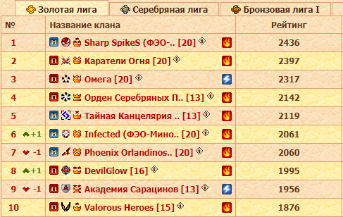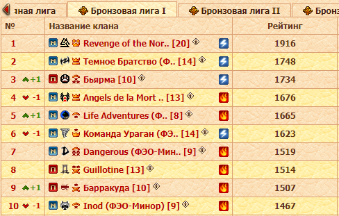 Катана крикнула – BI-n-GO! И поднялись на четыре позиции сразу – десятая строчка. BI-n-GO явно не хватило высокоуровневых магов, они потеряли три пункта – 15-ое место.