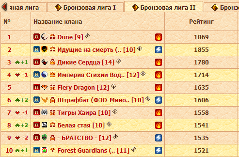Тем временем Fiery Dragon пытаются отбиться от вышеупомянутых Идущие на смерть, надеясь превратить количество (23 человека магмара явилось на последнюю битву!) в качество. Увы, чуда не случилось – миноровцы спокойно и размеренно забирают все острова, и нам остается лишь смотреть на табло – а точнее, на количество полученных очков. +46! Увы, но 46-31 = 15, 15 меньше 29: Идущие на смерть – вторые, Драконы – пятые, Дюна – победители Бронзовой лиги II.