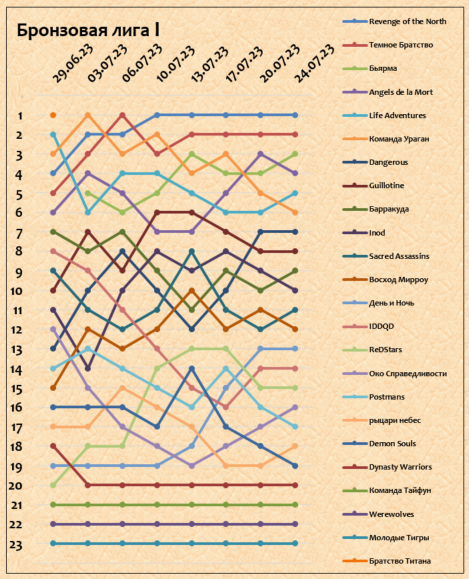 Удивил уходящий сезон и острейшей борьбой в Бронзовой лиге – в каждой из трёх подлиг разгорелись весьма нешуточные сражения. Это, безусловно, повышает уровень и у оставшихся двух лиг. Тем не менее, кажется, не нужно повторять эксперимент первого сезона Лиги Шеары – делить команды на две или три Серебряных лиги. Тот опыт показал – ни к чему хорошему это не приводит: конкуренция снижается, коллективы менее заинтересованы в сражениях, они легко занимают «удобные» места. По награде видно, что Администрация также обратила внимание на сражениях в бронзе: на сей раз награды получила не только первая тройка, как это обычно бывает. А учитывая, что подлиг три – это не может не радовать.