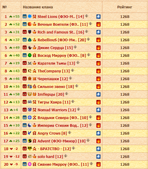 Слишком рано ещё смотреть на таблицу рейтинга, отметим лишь, что Воители стали вторыми в ней. А Орлы явно смогут себя ещё показать, если им не помешают активные боевые действия, которые развернулись между старшими игроками их расы перед началом сезона.