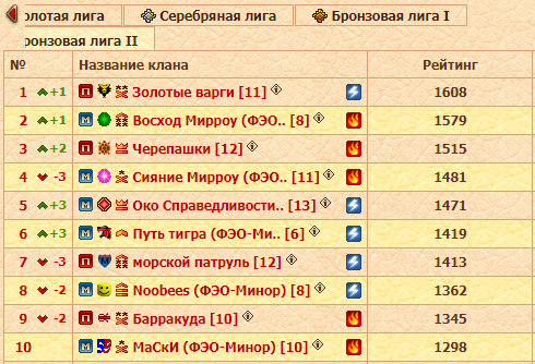 Временно упавшие в Бронзовую лигу ImПерцы отыгрывают достоинство подданных Империи, попутно спугнув стаю Angry Crows. Преимущество в уровнях и количестве бойцов у Имперцев придаёт аэродинамическое ускорение Воронам, отбрасывая их на пятое место в рейтинге. А Перцы восстанавливают свою честь, влетая на шестую строчку серебра.