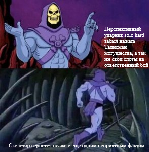 Дерзкий Хам: Был забавный момент, когда вышел их воевода. Я понимал, что честнее было бы пойти биться два на два, но со словами «Прости, Серега, я пошел делать 3:2» полетел к Atlanted. Кстати говоря, всего с одной стрелой и без питомца, но это уже локальный мем нашего клана. Зато успел переставить слот банки на антихаос, джах противника два раза укусил нашего резервиста.